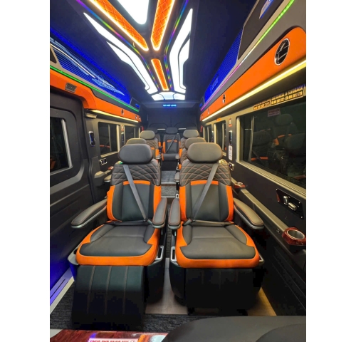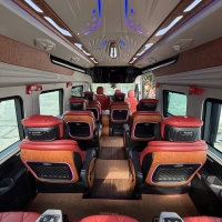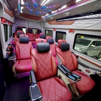 Điểm nhấn chính của xe Limousine 12 chỗ chính là không gian nội thất được thiết kế theo phong cách "phòng khách di động". Ghế ngồi bọc da cao cấp, có chức năng điều chỉnh điện, massage, mang lại sự thoải mái tối đa cho hành khách trên mọi chặng đường. Hệ thống âm thanh, màn hình giải trí sống động, kết nối Wi-Fi tốc độ cao, tủ lạnh mini, và hệ thống đèn LED tạo nên một bầu không khí thư giãn, sang trọng. Các vách ngăn cách âm tinh tế cũng đảm bảo sự riêng tư và yên tĩnh cho hành khách.